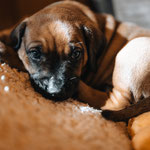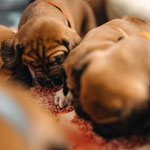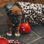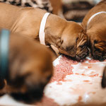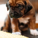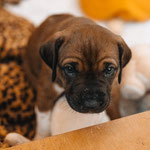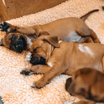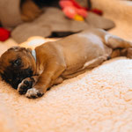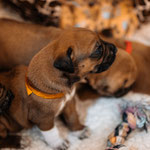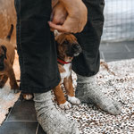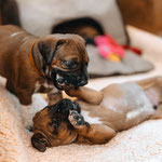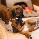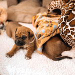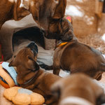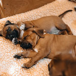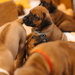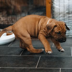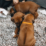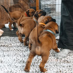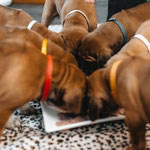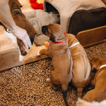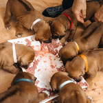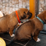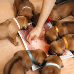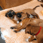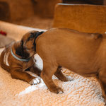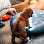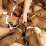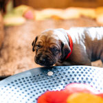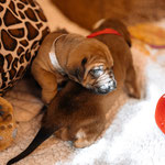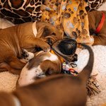 Nun ist schon richtig Stimmung im Welpenzimmer und die Reaktion auf Sicht- und Hörzeichen sind deutlich sichtbar. Auch das "stubenrein" Training zeigt gute Erfolge.
