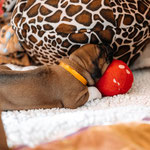 Meine kleine Zaubermaus, im März 2021 hätte ich dich durch einen eingefressenen Fremdkörper fast verloren. Dank einer Notoperation, Intensivbehandlung und deinem Kämpferherz bist du noch bei mir. Ich wünsche mir noch viele gemeinsame Jahre mit dir und freue mich schon sehr darauf, dich wieder in der Rolle der verzückten Oma bei der Aufzucht der Hodari´s zu erleben.