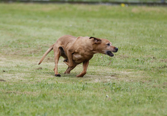 Auch mit fast 11 Jahren ist Zainas Begeisterung, den Puschel zu fangen nicht weniger geworden.
