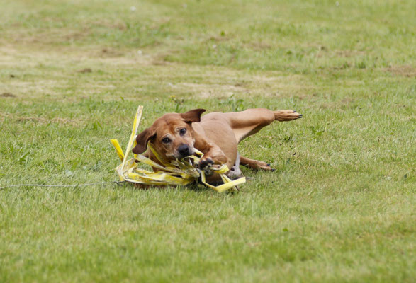 Auch die Coursing-Richter waren beeindruckt, mit wieviel Energie und Einsatz Zaina auch noch am Ende den "Kill" ausführt.